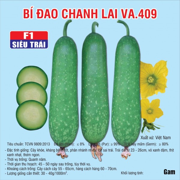 Đặc tính giống: Cây khỏe, kháng bệnh tốt, phân nhánh nhiều, rất sai trái. Trái dài từ 23-26cm, vỏ xanh đậm, thịt xanh nhạt, thơm ngon.