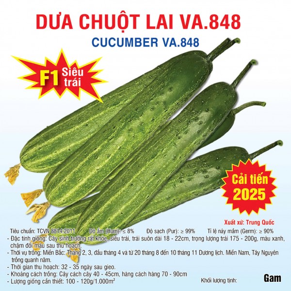 Hạt giống Dưa chuột lai VA.848 Cải tiến 2025 - 10gam